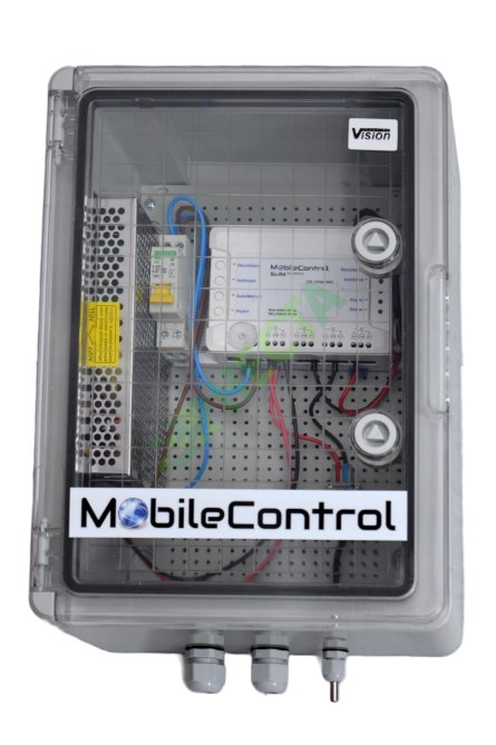 Comanda se poate face printr-un sistem integrat pentru controlul solariilor de pe telefonul mobil,tableta, (sau manual de pe panou).