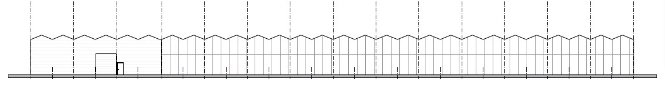 Cele 8 corpuri sunt unite și ridizate astfel încât realizează o singură fereastră cu lungimea de 40m, fereastră montată pe un plan înclinat(coamă) al acoperișului.