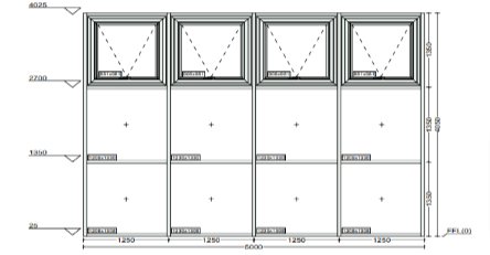Pentru pereții frontali și laterali s-a adoptat un sistem de perete tip cortină cu dimensiunile din desenele de mai jos