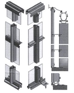 Pereți frontali și laterali vor fi realizați prin asamblarea profilelor din aluminiu tip CW50: