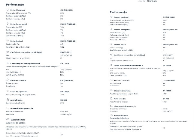 NOTĂ: Carcteristicile tehnice ale sticlei se prezintă în fișele tehnice anexate.